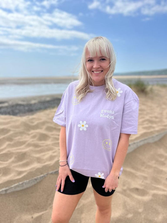 Gwena blodyn-Peppermint/Lavender- Crys T Oversized Oedolion