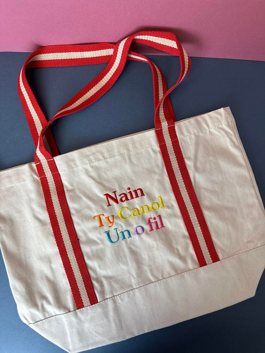 Tote bag wedi personoli-personalised tote bag ani-bendod