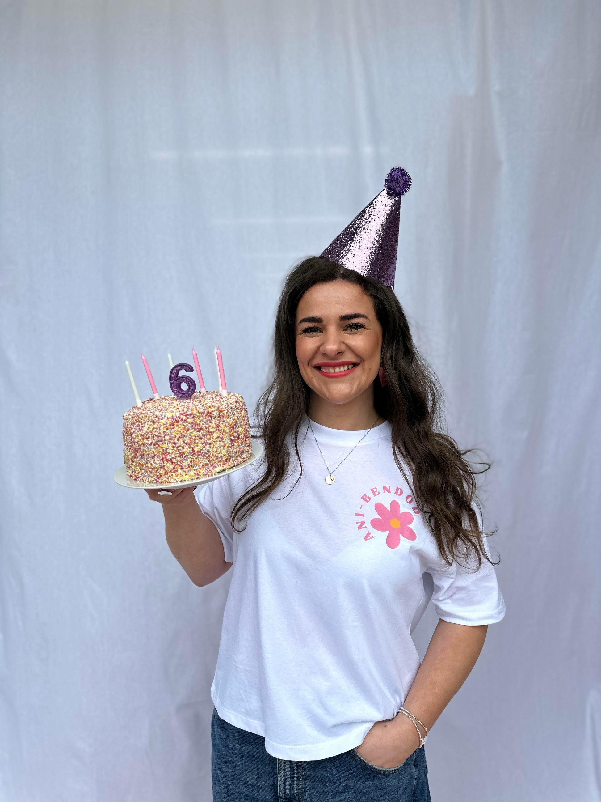 Ani is wearing size S in the white tee.