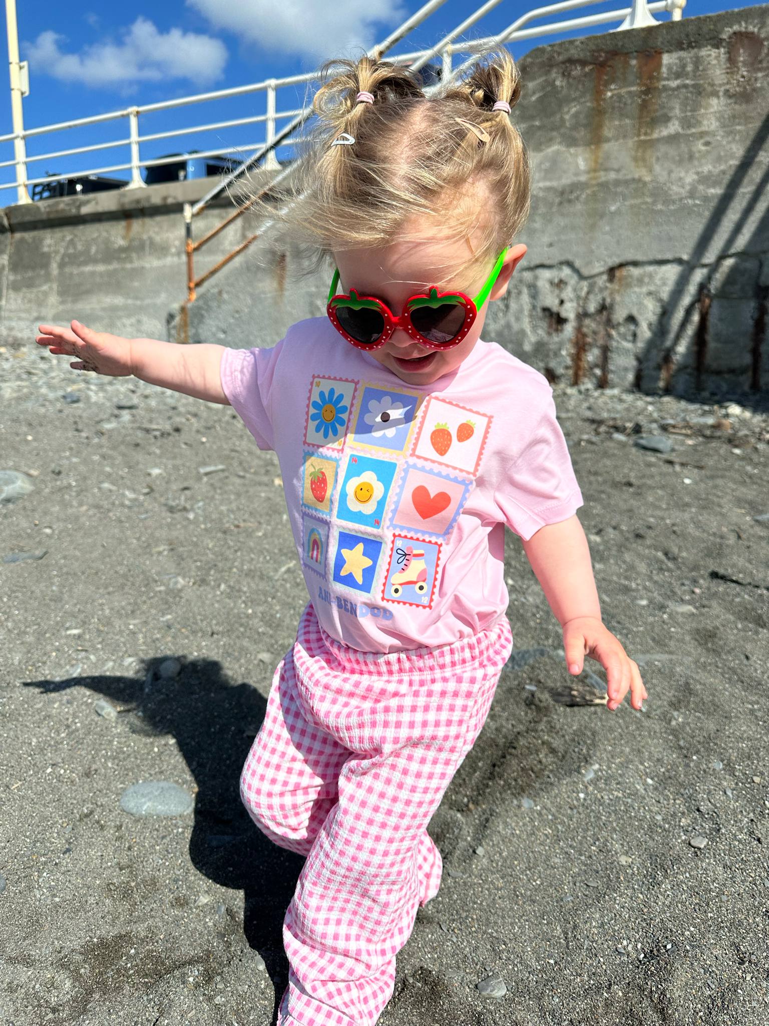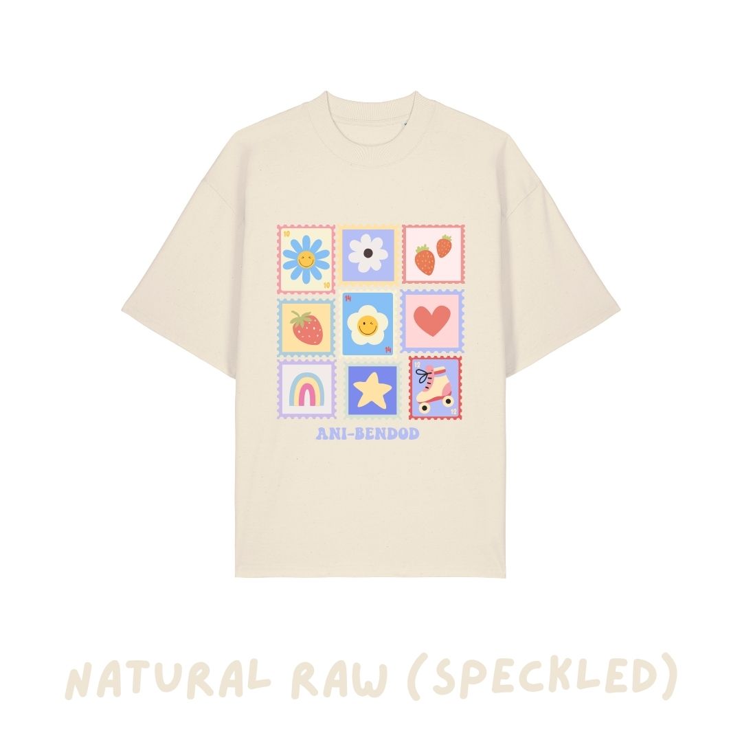 Crys t stampiau lliwgar Plant ac Oedolion | Kids & Adults Colourful Stamps Tee