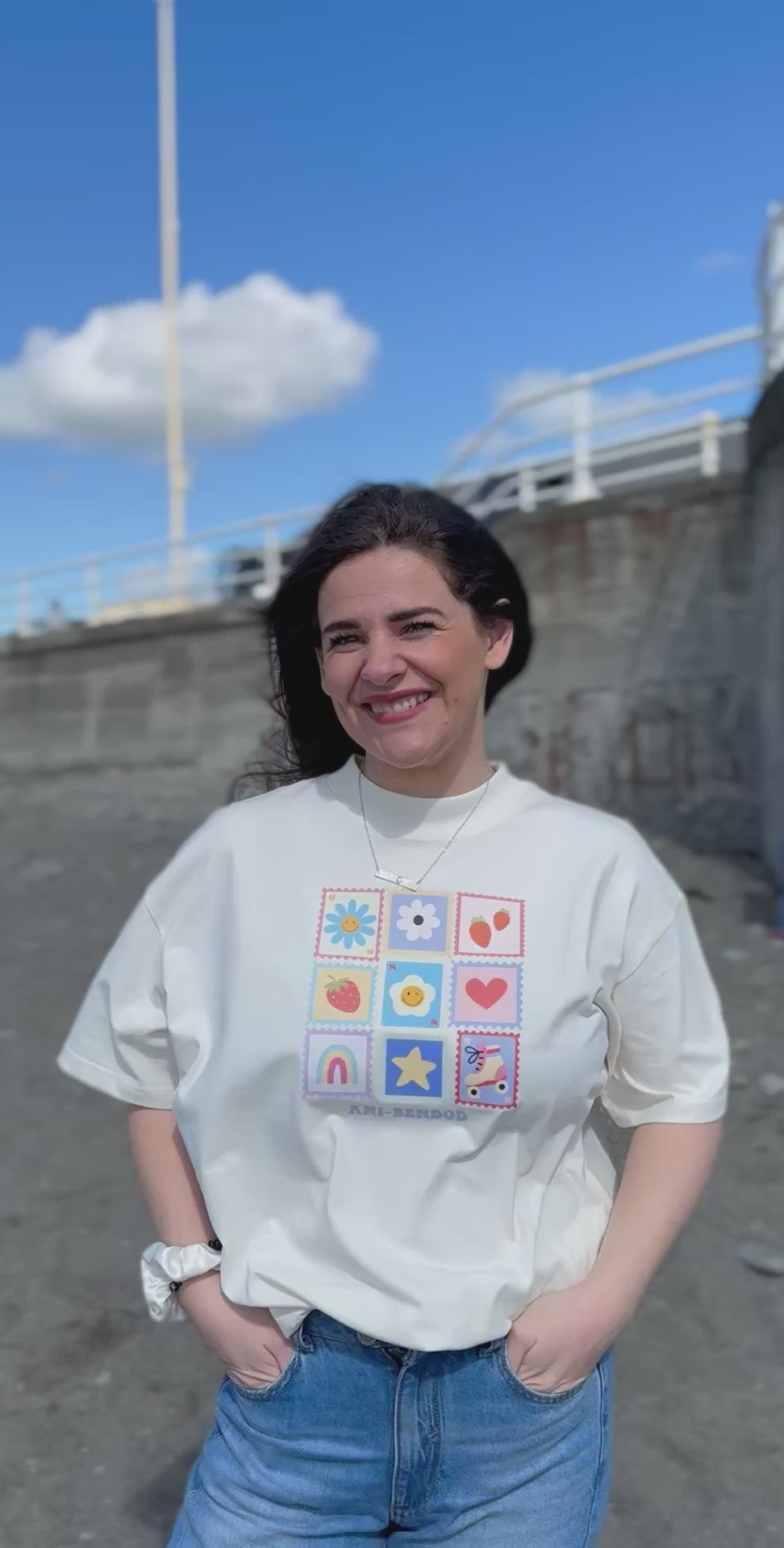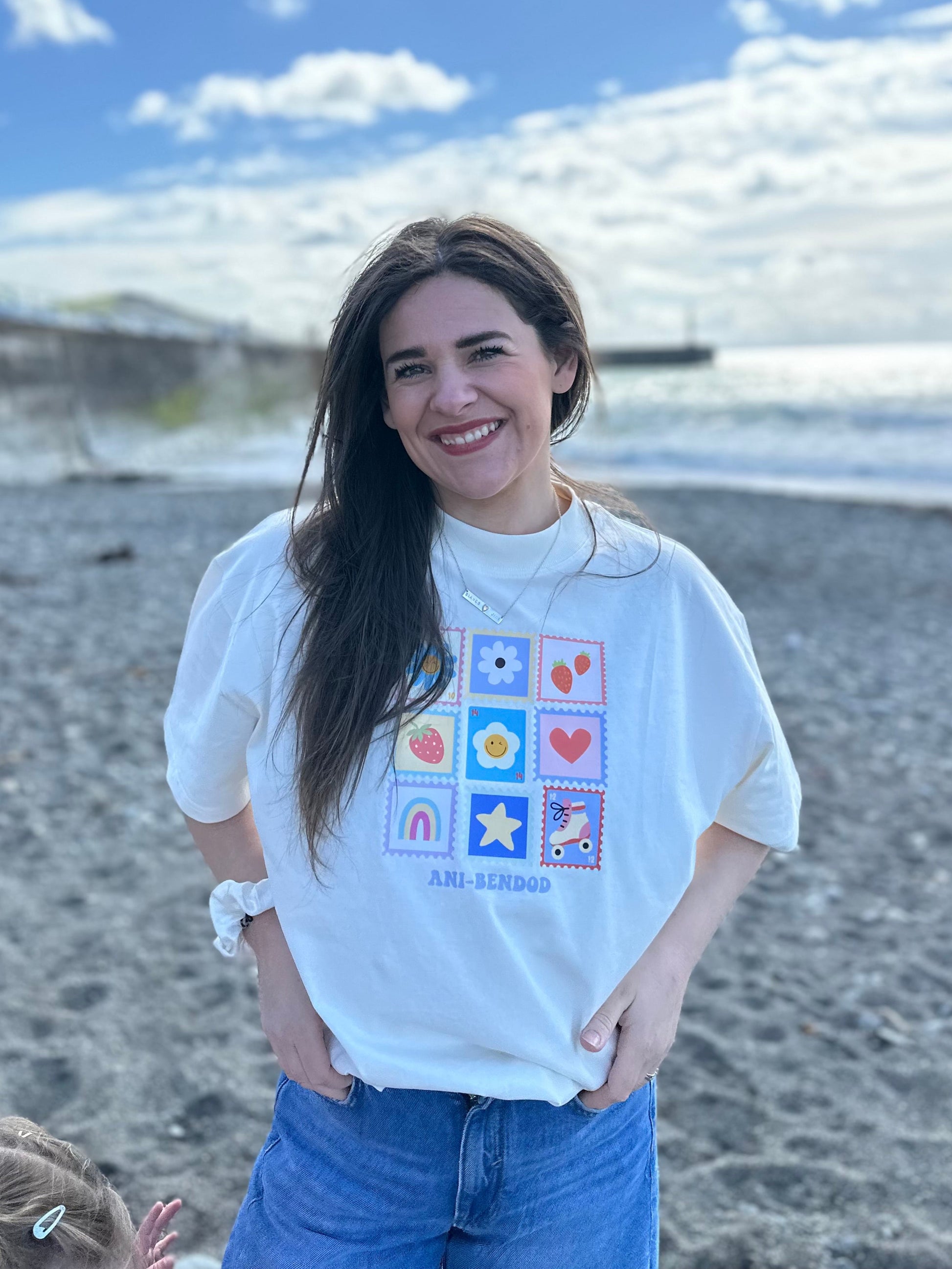 Crys t stampiau lliwgar ani-bendod | ani-bendod colourful stamps tee
