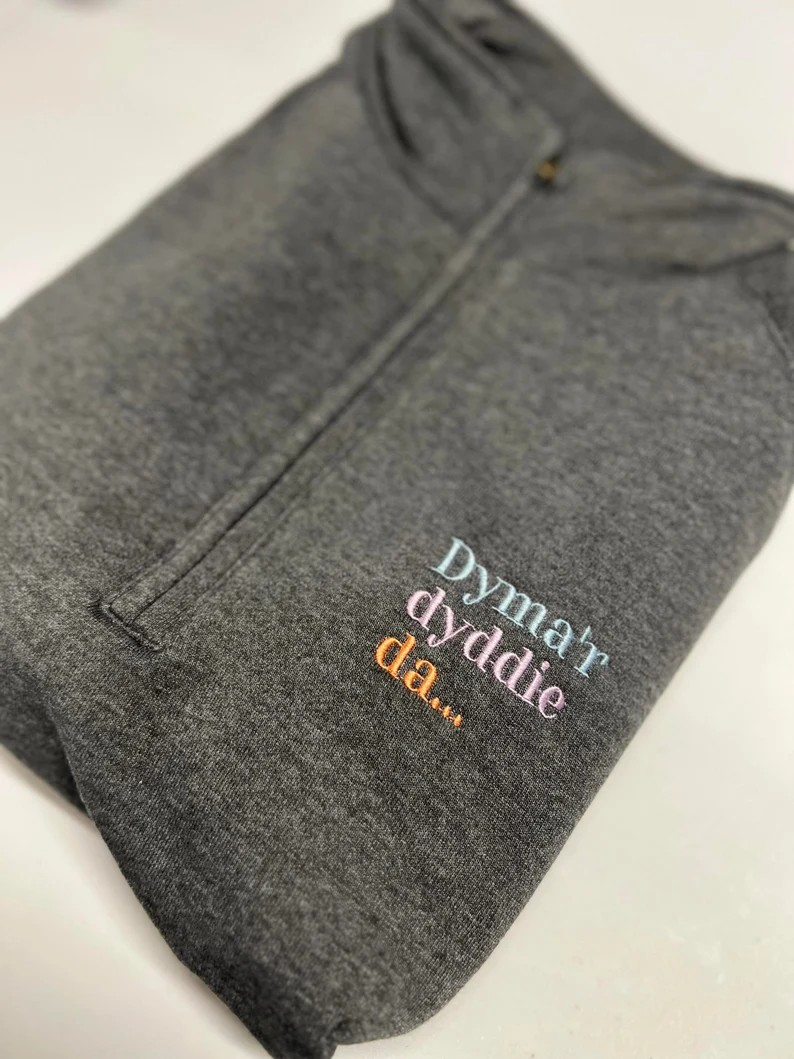 Dyma'r dyddie da 1/4 zip siwmper- ani-bendod 1/4 zip Sweatshirt