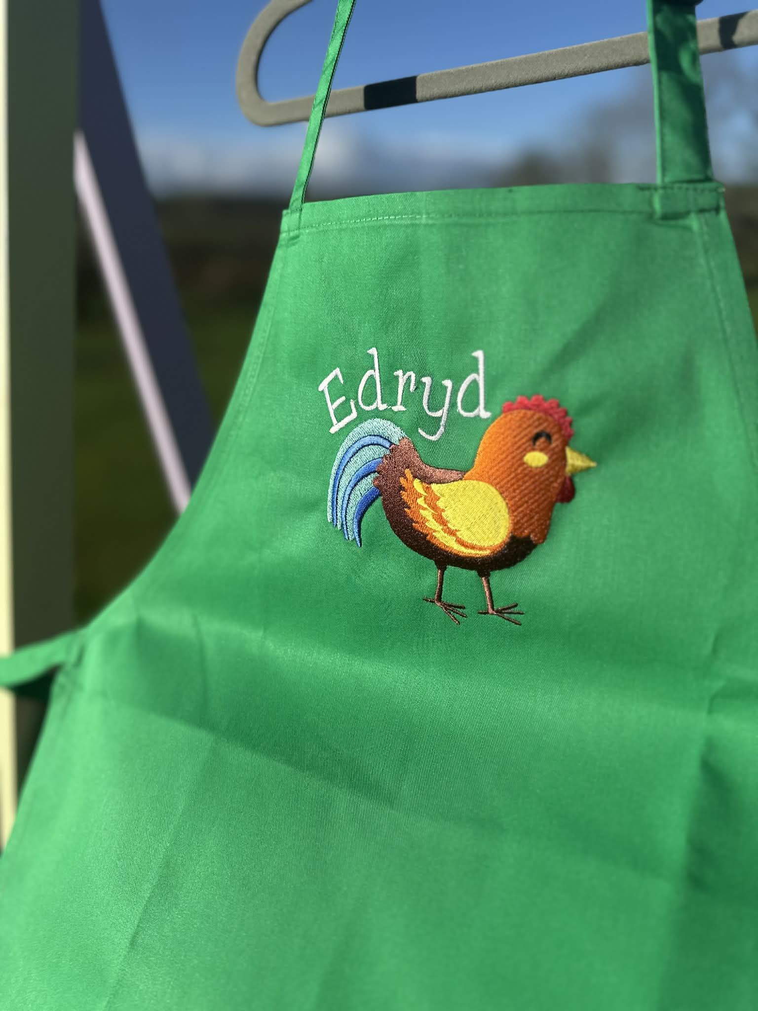 -Argymhellir enw cyntaf yn unig (y mwyaf o lythrennau sydd, y lleiaf yw'r brodio ac mae hyn yn medru achosi'r brodio i edrych yn anneglur). Efallai byddwn yn brodio'r enw o dan y dyluniad os yw'n hir/rhoddir dau enw.