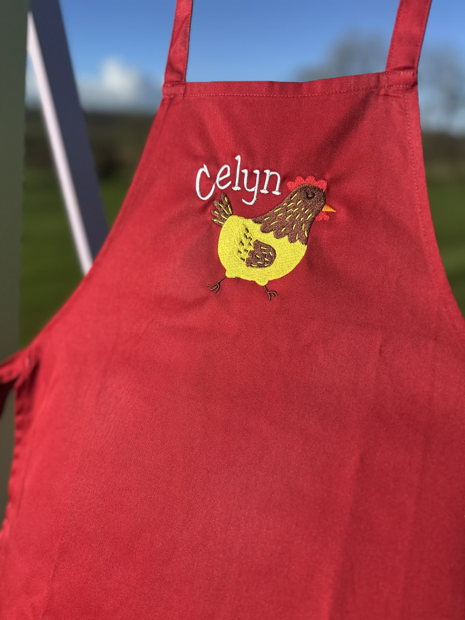-Note: this apron has a sliding adjustable buckle on the neckband so the wearer can adjust the overall length