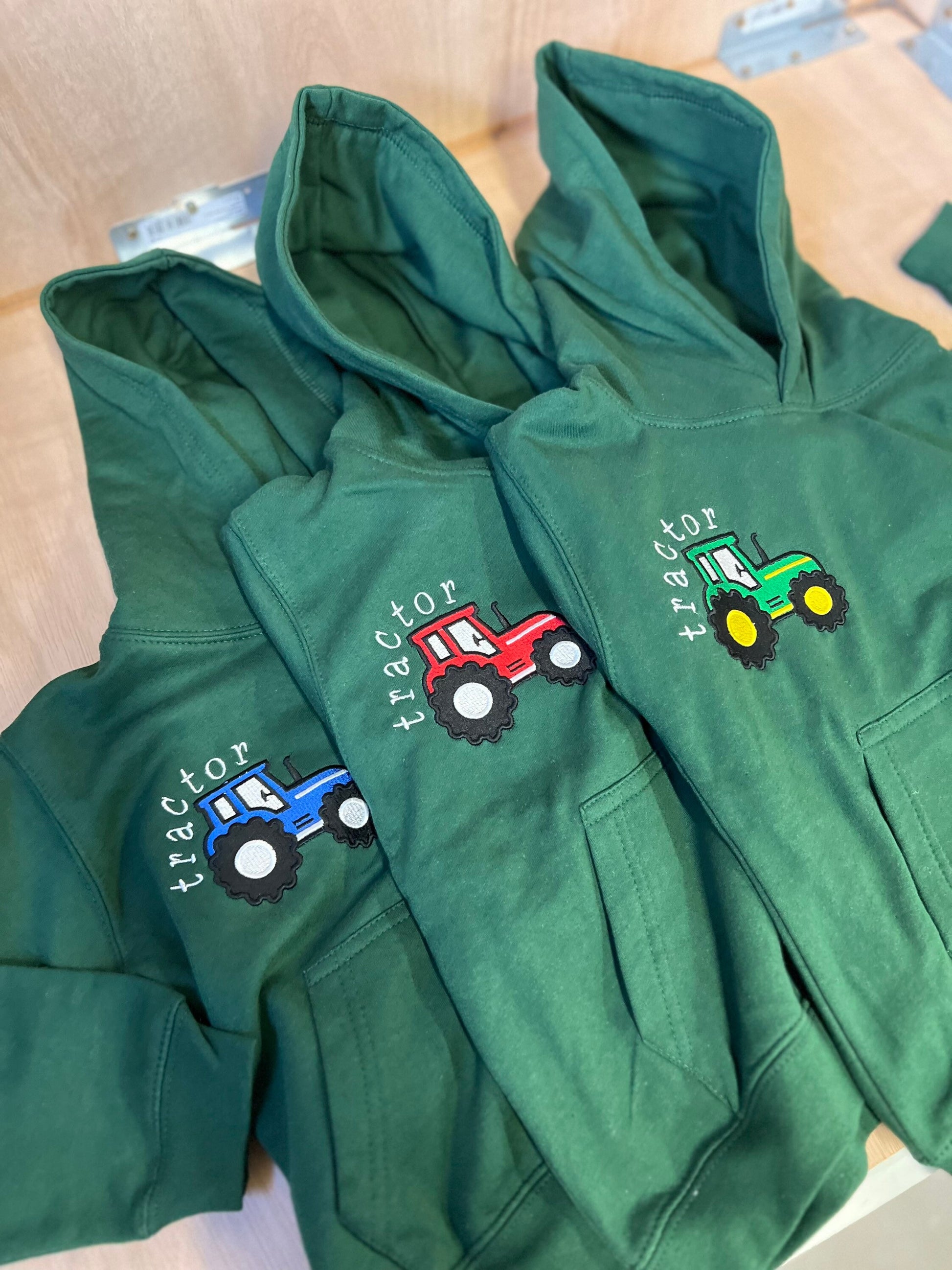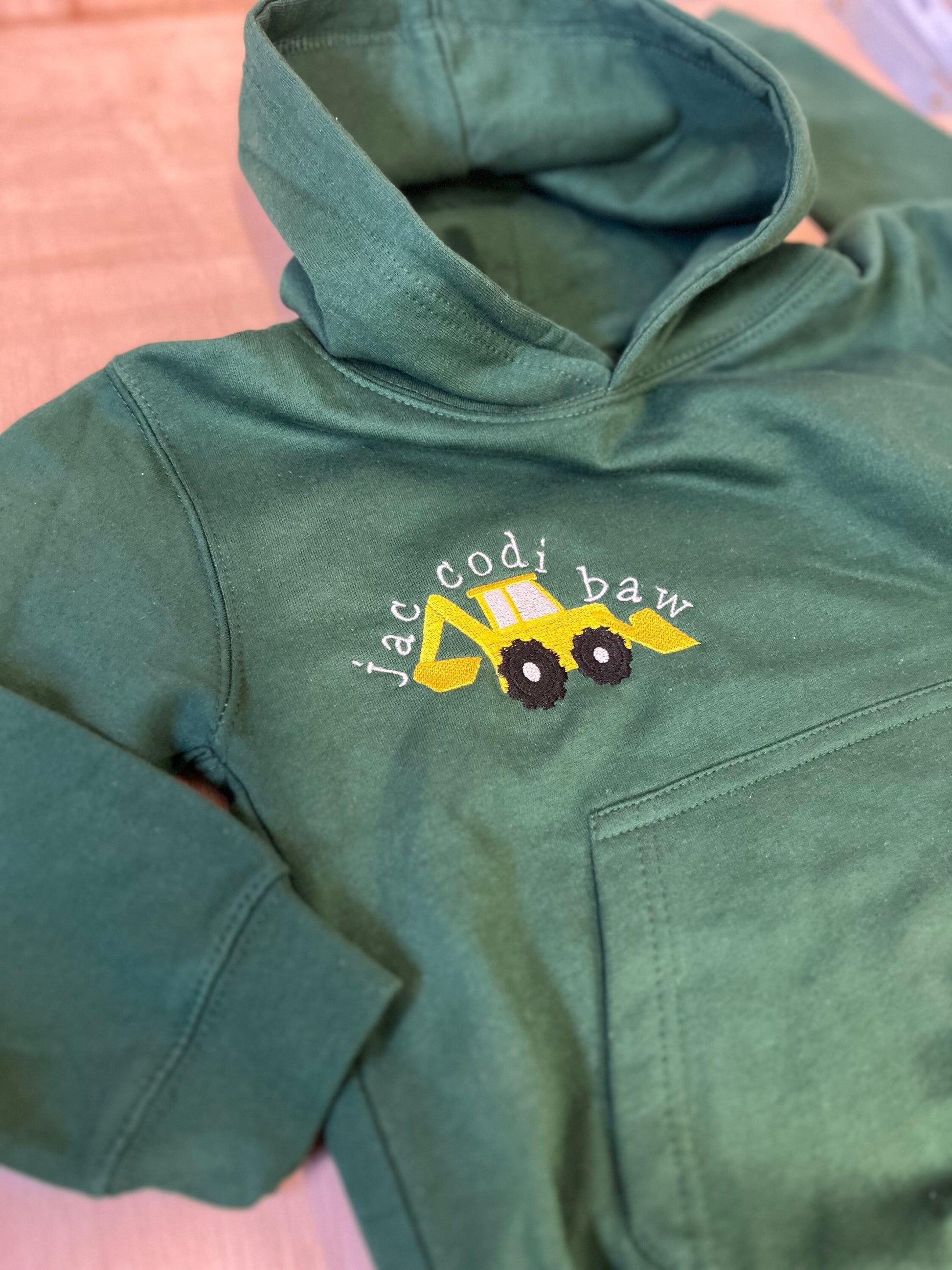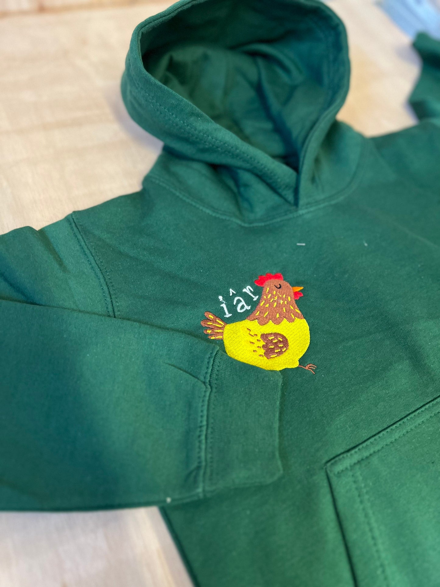 Hey there! This item is part of 'The farm' collection by ani-bendod. Hoodies come in pink, green or blue so please check out our other listings! Also included in this collection are bibs, tshirts, sweatshirts and dungarees- paired together they make a great gift.