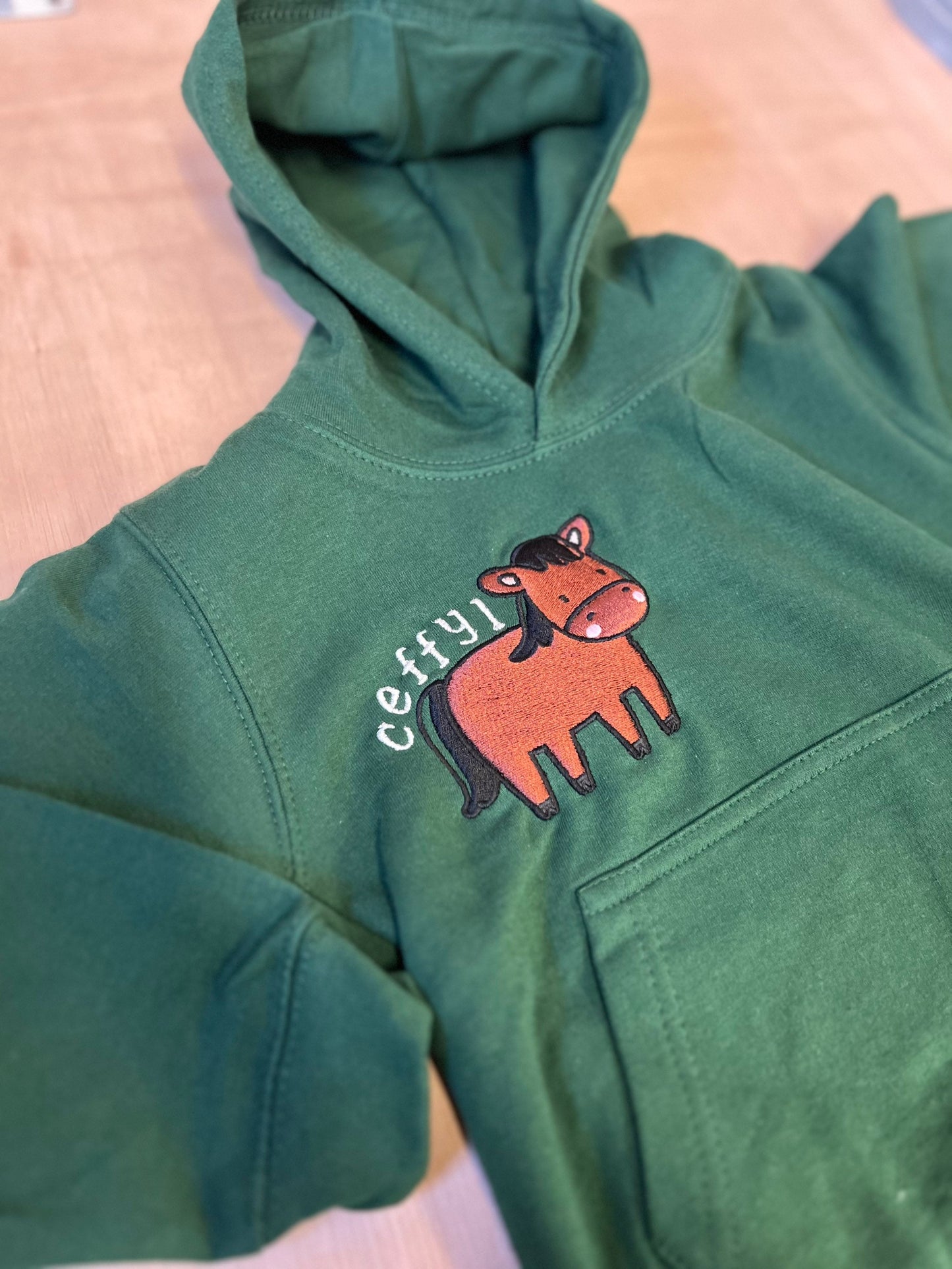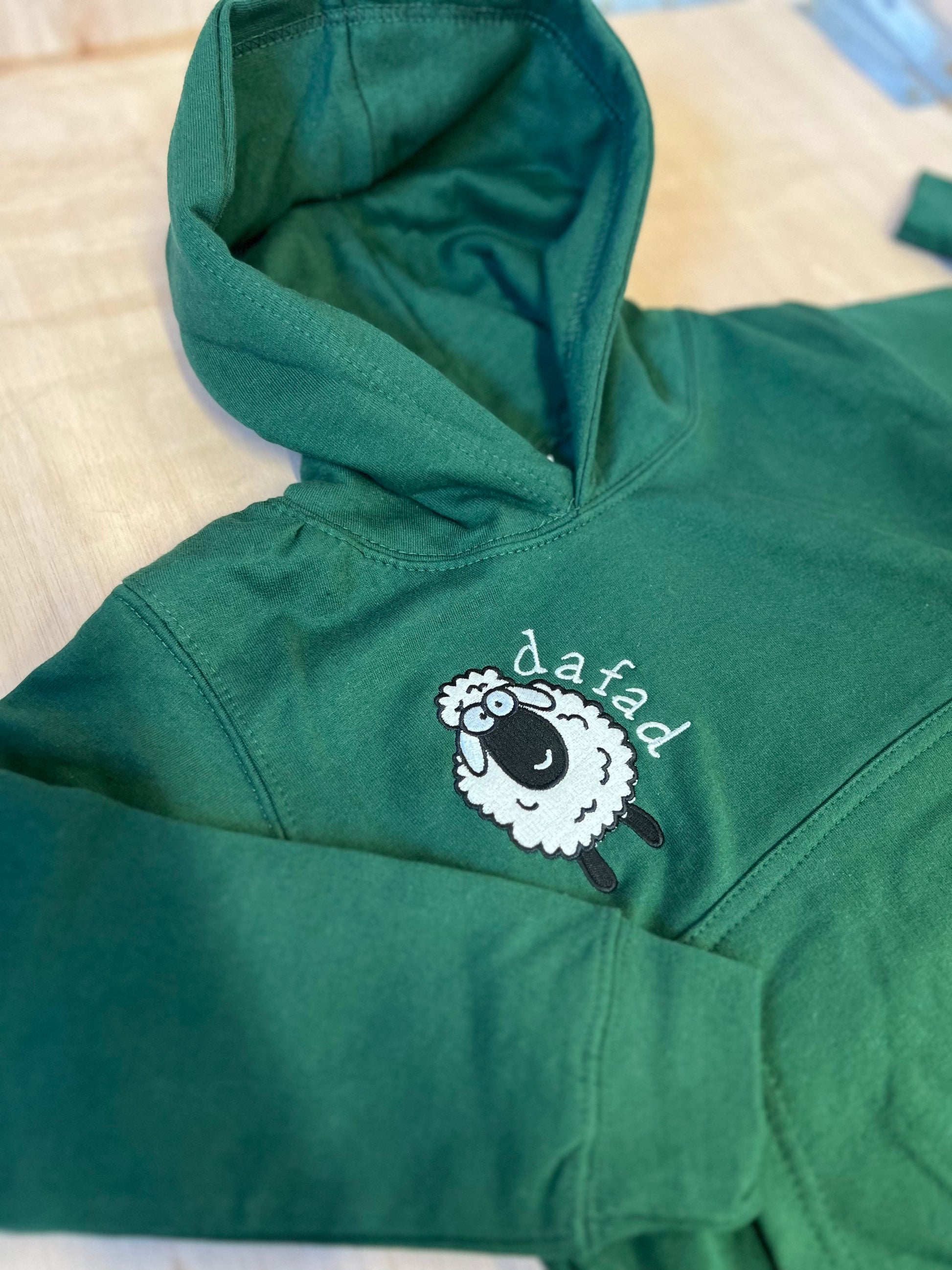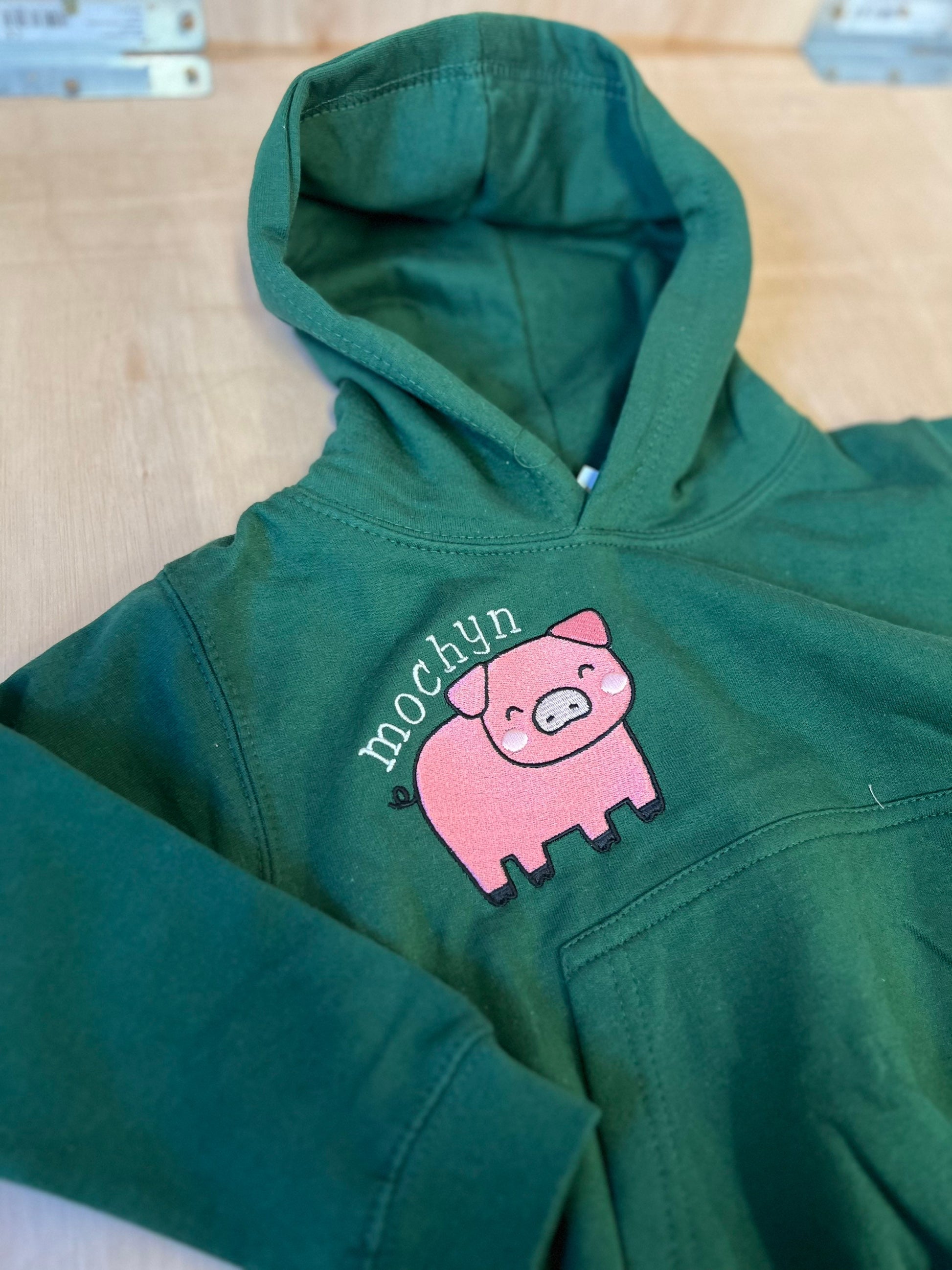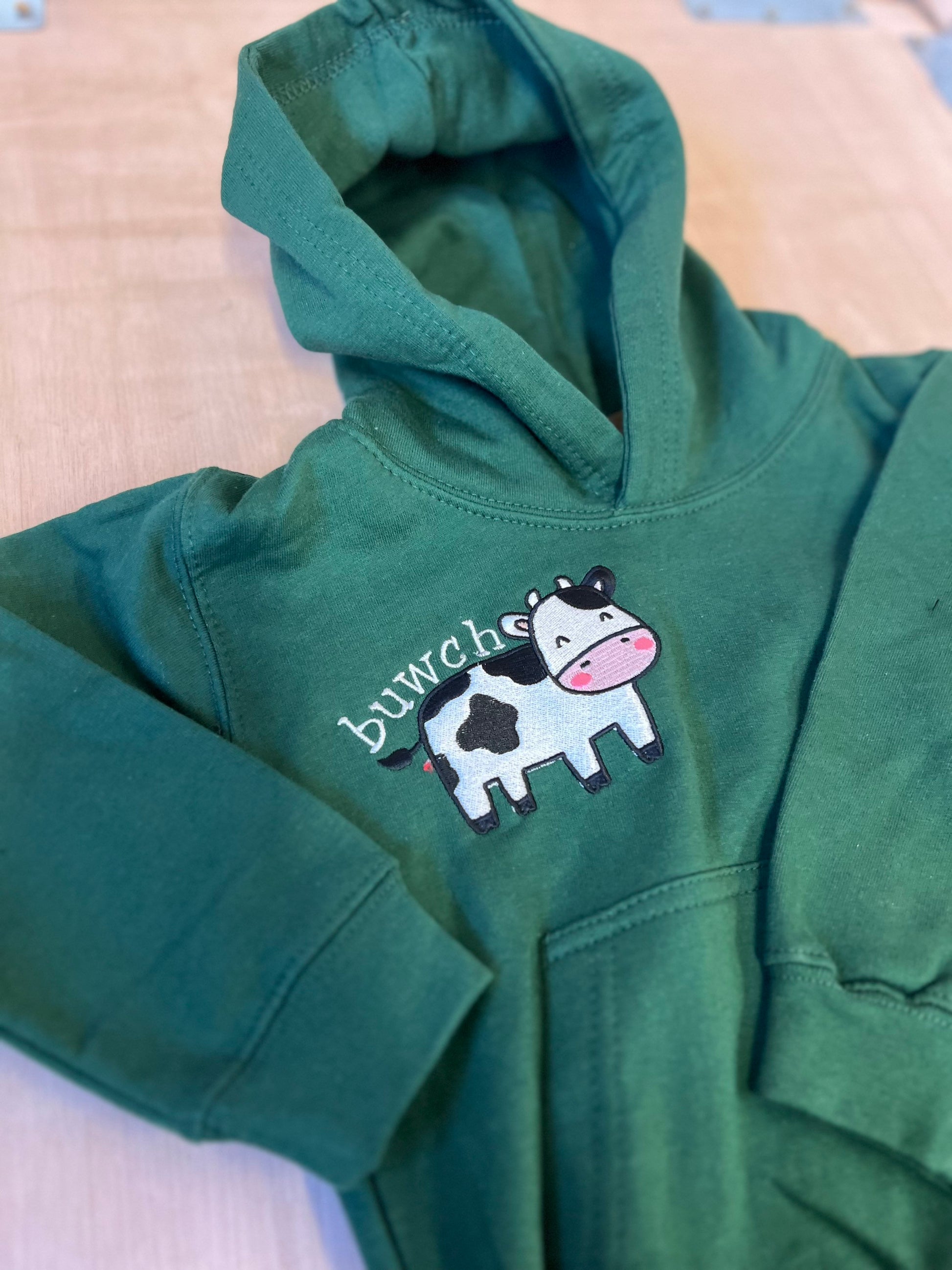 Shwmae! Rhan o gasgliad 'Y Fferm' gan ani-bendod. Mae hwdis gwyrdd, pinc neu las ar gael felly edrychwch ar ein 'listings' eraill. Yn ogystal a hyn mae bibs, crysau t, siwmperi a dyngaris. Cyfunwch nhw gyda'i gilydd am anrheg hyfryd.