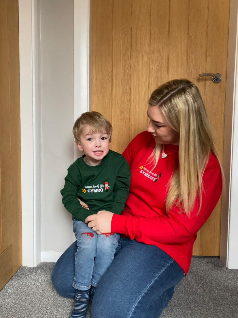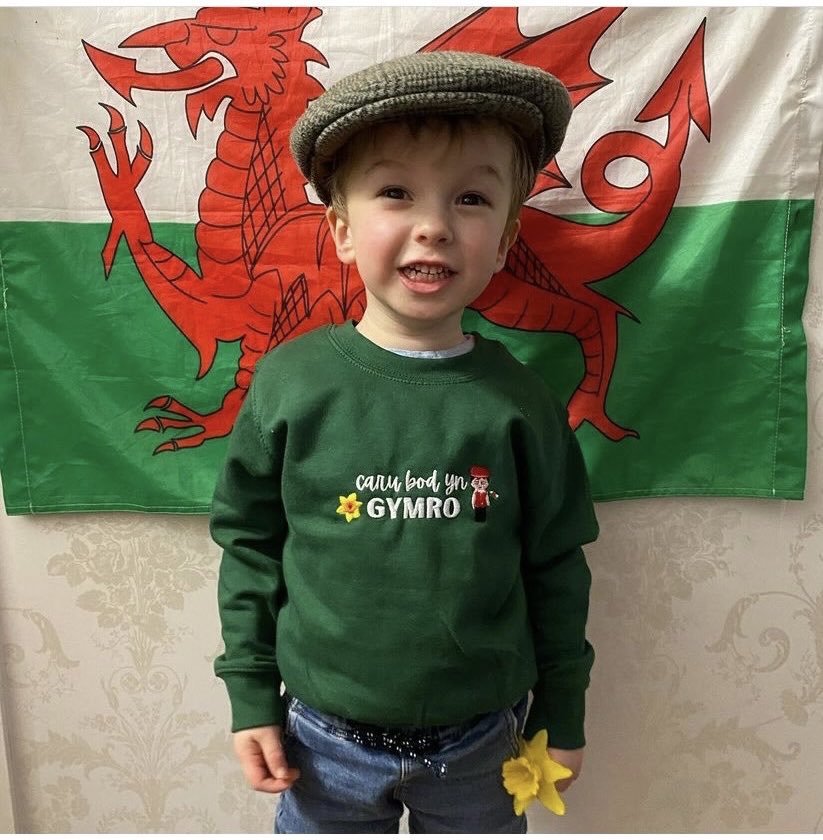 Siwmper/Sweatshirt Joio/caru bod yn Gymro/Gymraes plant ac oedolion