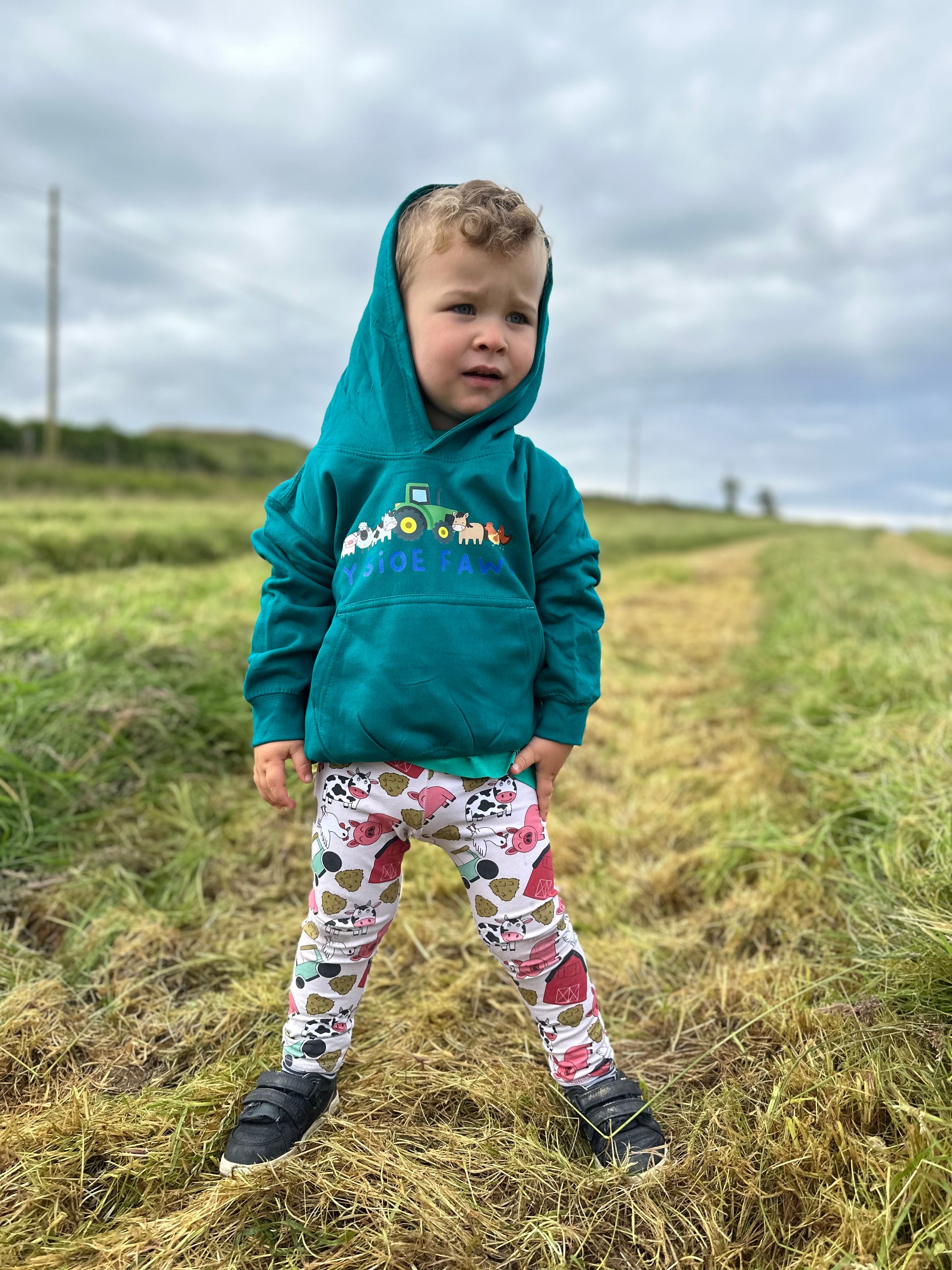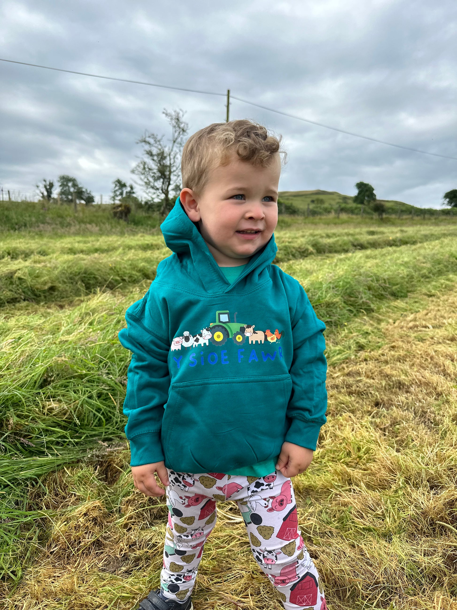 Hoodies with a transfer front, including 'Y Sioe Fawr' and farm animal illustrations, perfect for The Royal Welsh Show.
