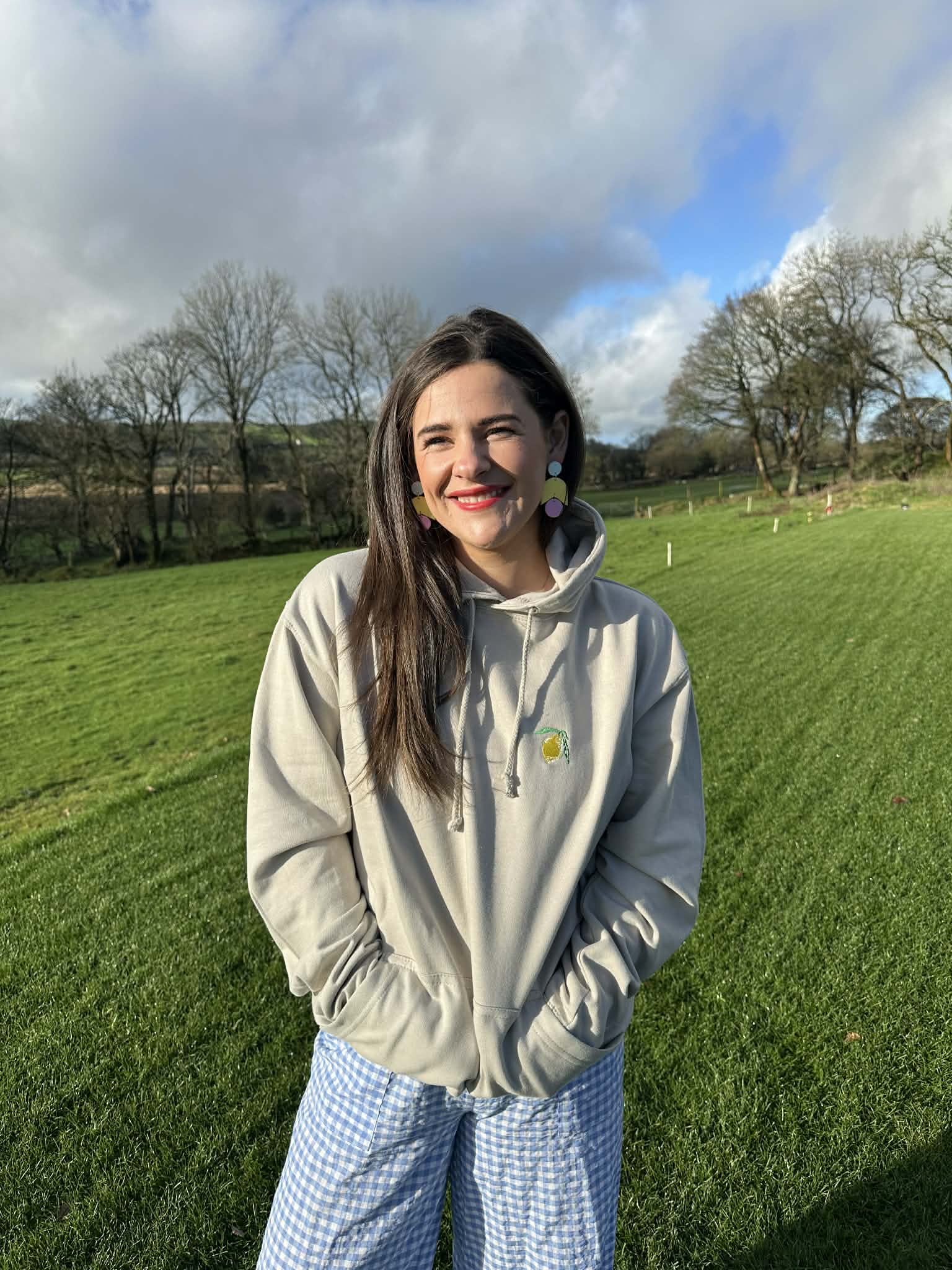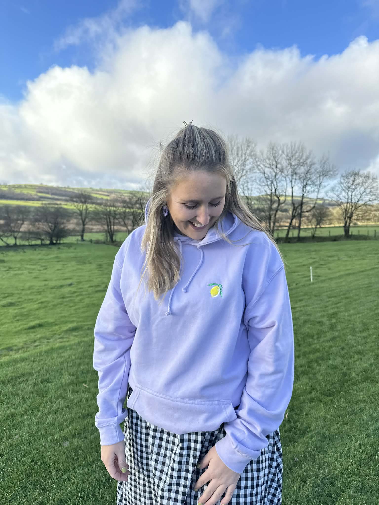 This hoodie has a lovely lemon embroidery on the front and the back is decorated with a transfer.