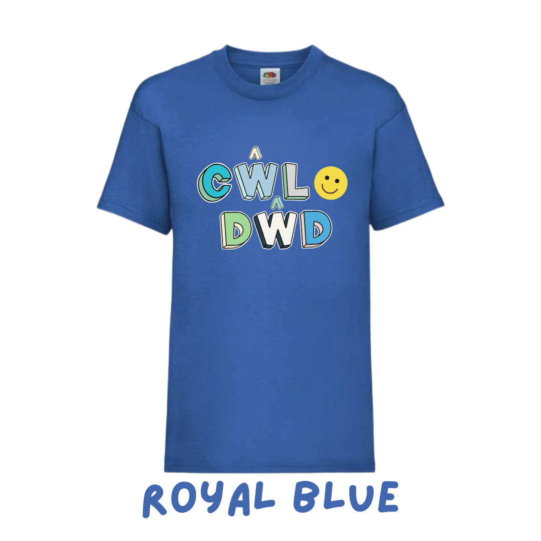 T-shirt with a transfer front. ‘Cŵl Dŵd’ translates to 'Cool Dude'.