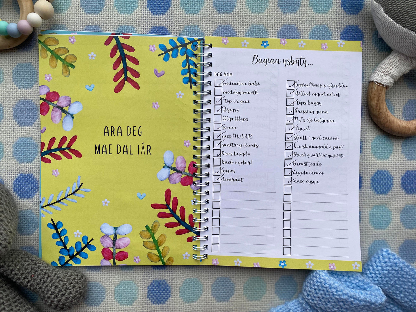 Llyfr A5- Llyfr bach mamolaeth, ar gyfer cofnodi'r amser arbennig iawn yn eich bywyd. (dim clawr caled) - 62 tudalen amrywiol (nid oes pob tudalen yn y lluniau)