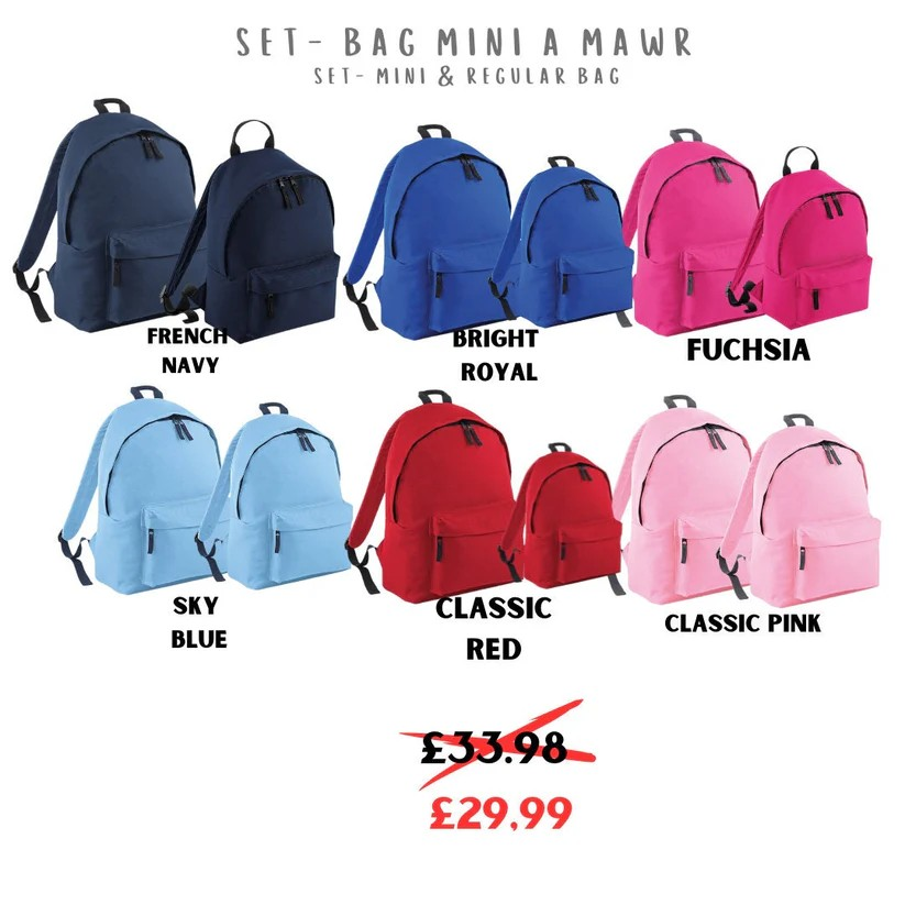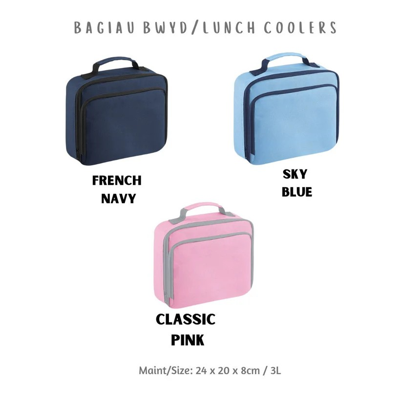 SETS: You'r welcome to mix and match designs/colours/names- use 'add note to seller' or 'personalisation' to note your prefrences. PLEASE have a look at which colours are available as not all mini bags come in the same colours as the regular bags, and there are only 3 colours to choose from in the cooler lunch bags. Diolch :)