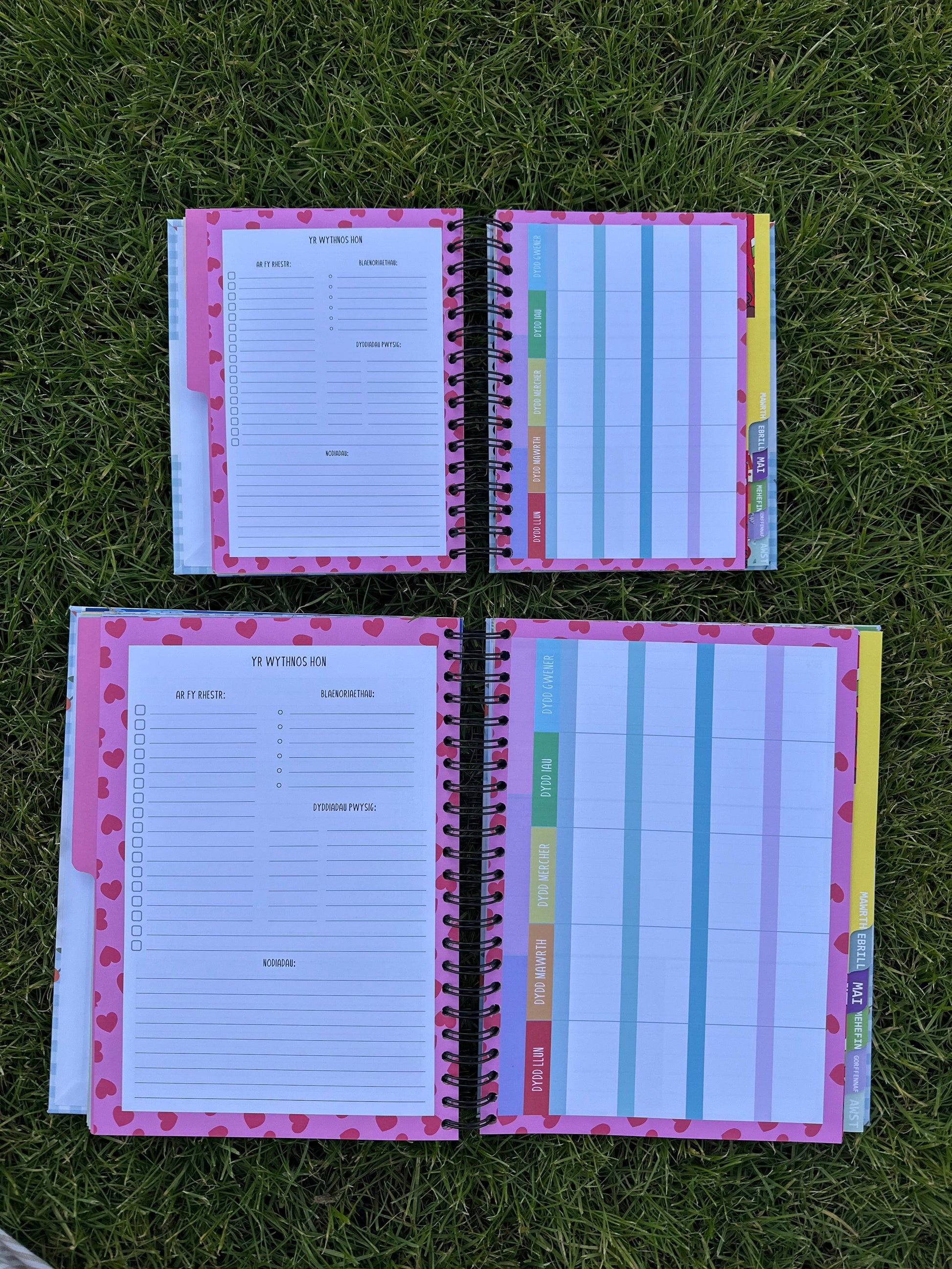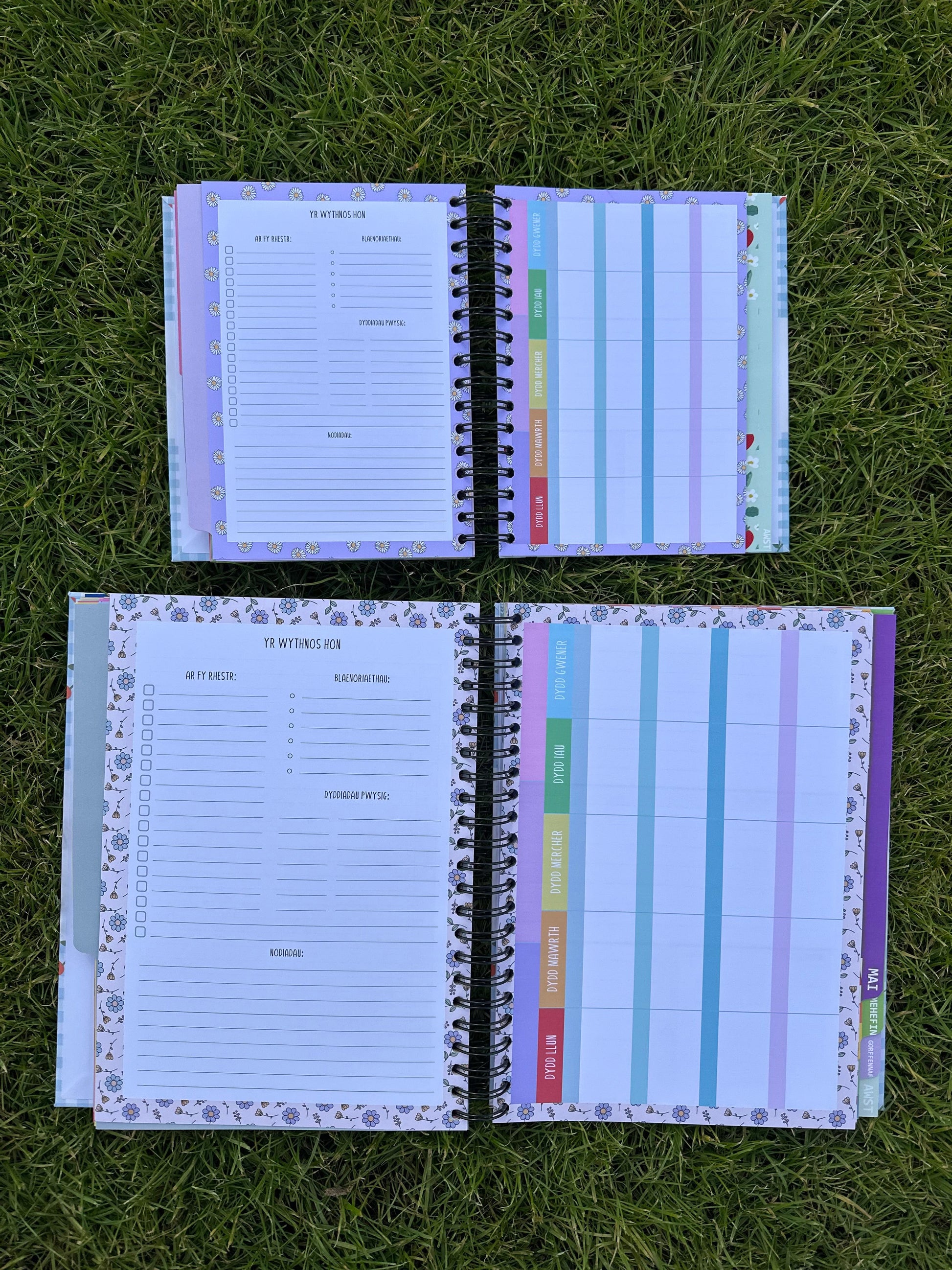 -A4 ac A5: yn cynnwys amserlen wythnosol i gynllunio unrhyw beth- gwaith, bwyd, dosbarthiadau, gweithgareddau'r plant (opsiwn 4 bloc yn unig)