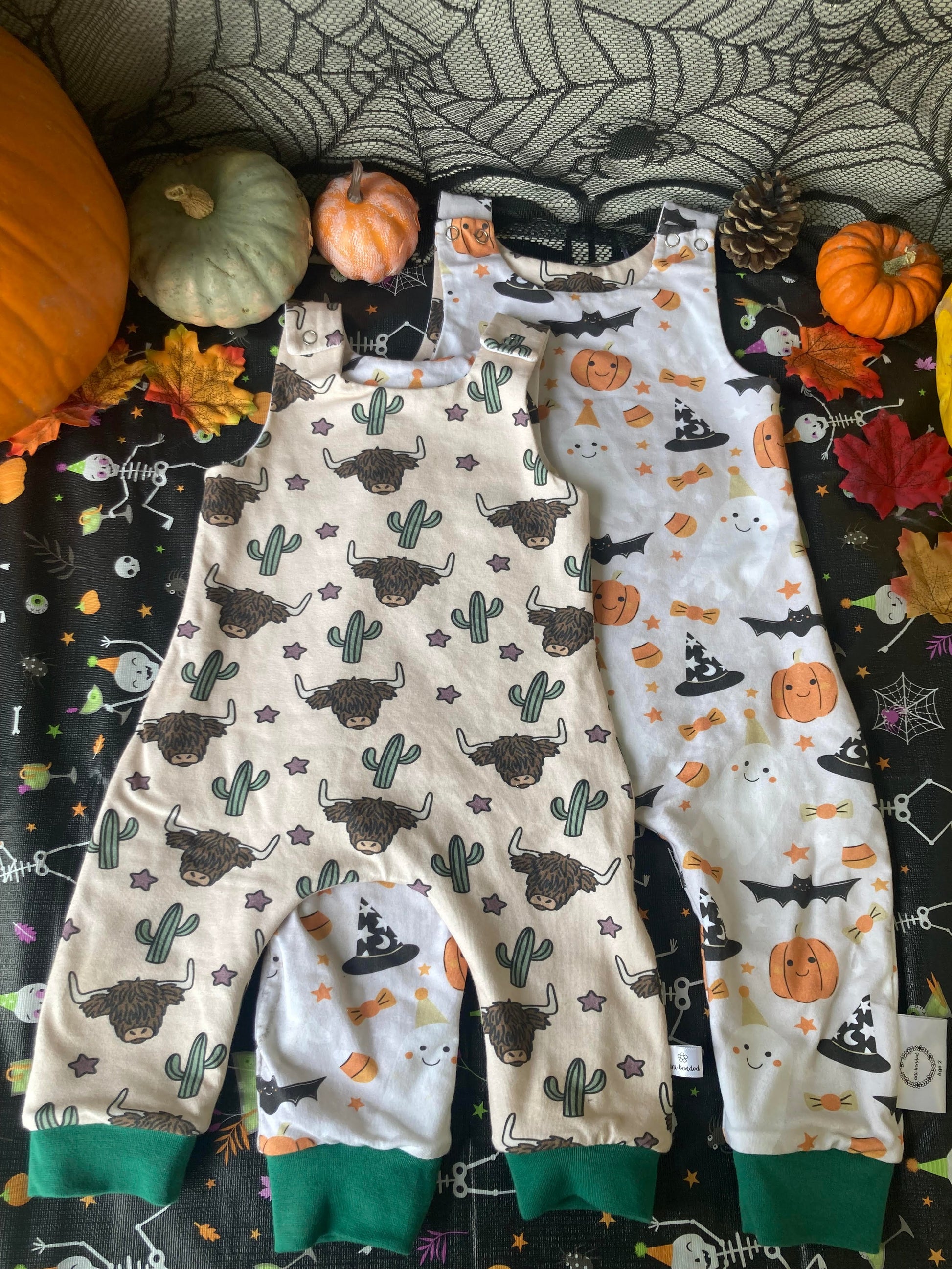 *NEWYDD*- Rompers dwy ochrog- cewch chi ddwy wisg mewn un efo rhein, trowch nhw o amgylch i gael gwisg hollol wahanol. Mae'r lliwiau mor llachar a hyfryd. Mae rhain fwy trwchus na'n rompers arferol gan bod dwy haen o ddefnydd.