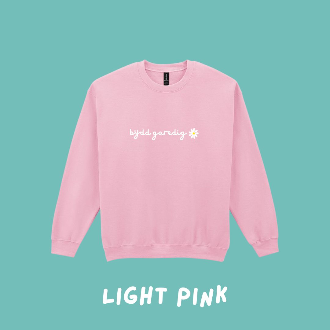 These sweatshirts have an embroidered front, 'Bydd Garedig' translates to 'Be Kind'.